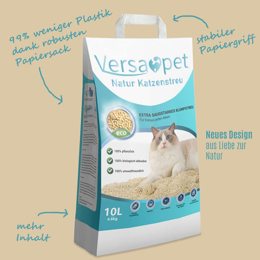 VERSAPET Katzenstreu Tofu-Katzenstreu 2.0 gemischt mit Millet,(4 x 10 Liter/4.6 kg, 4-tlg., Bio-Öko-Katzenstreu), Klumpstreu für Katzenklo, Cat Litter, feste Klumpenbildung